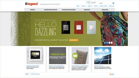 As part of the evolution of the Legrand homepage design, this design is a transition to a longer page design which is now in progress.