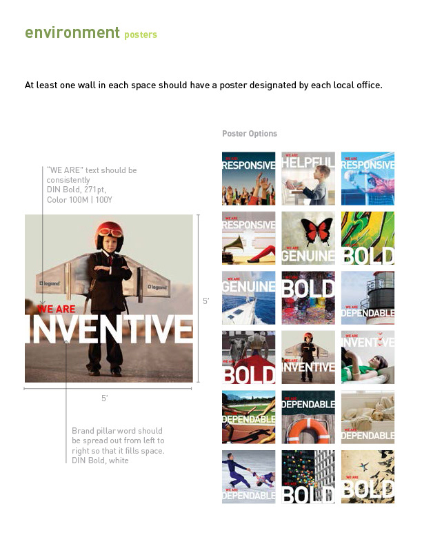 Develop a visual strategy for Legrand corporate offices in North America which helps to build the brand internally.